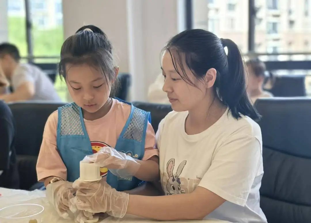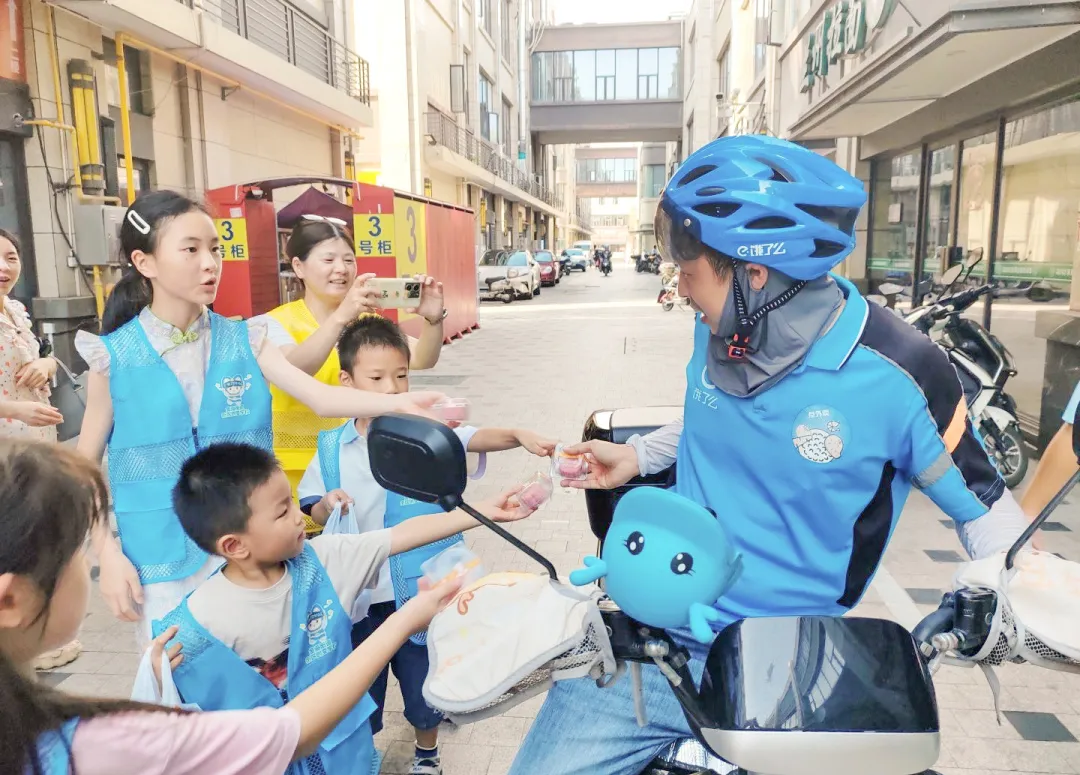 冰皮月饼制作后,亲子家庭亲手将这份甜蜜与祝福送给坚守岗位的外卖员、保洁员和保安。这不仅是传统文化的传承,更是一堂生动的感恩与公益实践课,让互助友爱的种子在幼小的心灵中生根发芽。