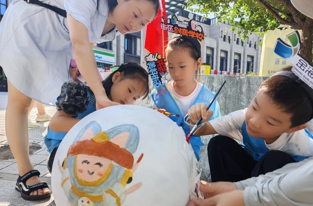 彩绘活动中,孩子们用画笔将朴素的石墩变为承载童趣与爱国情怀的街头艺术品,潜移默化中强化了“街区主人翁”意识。